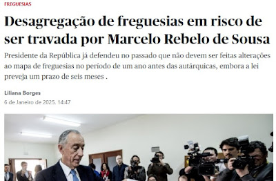 Segundo os órgãos de comunicação social, a desagregação das uniões de freguesias aprovadas pelo Grupo de Trabalho das Freguesias poderá estar em risco devido à posição do Presidente da República.